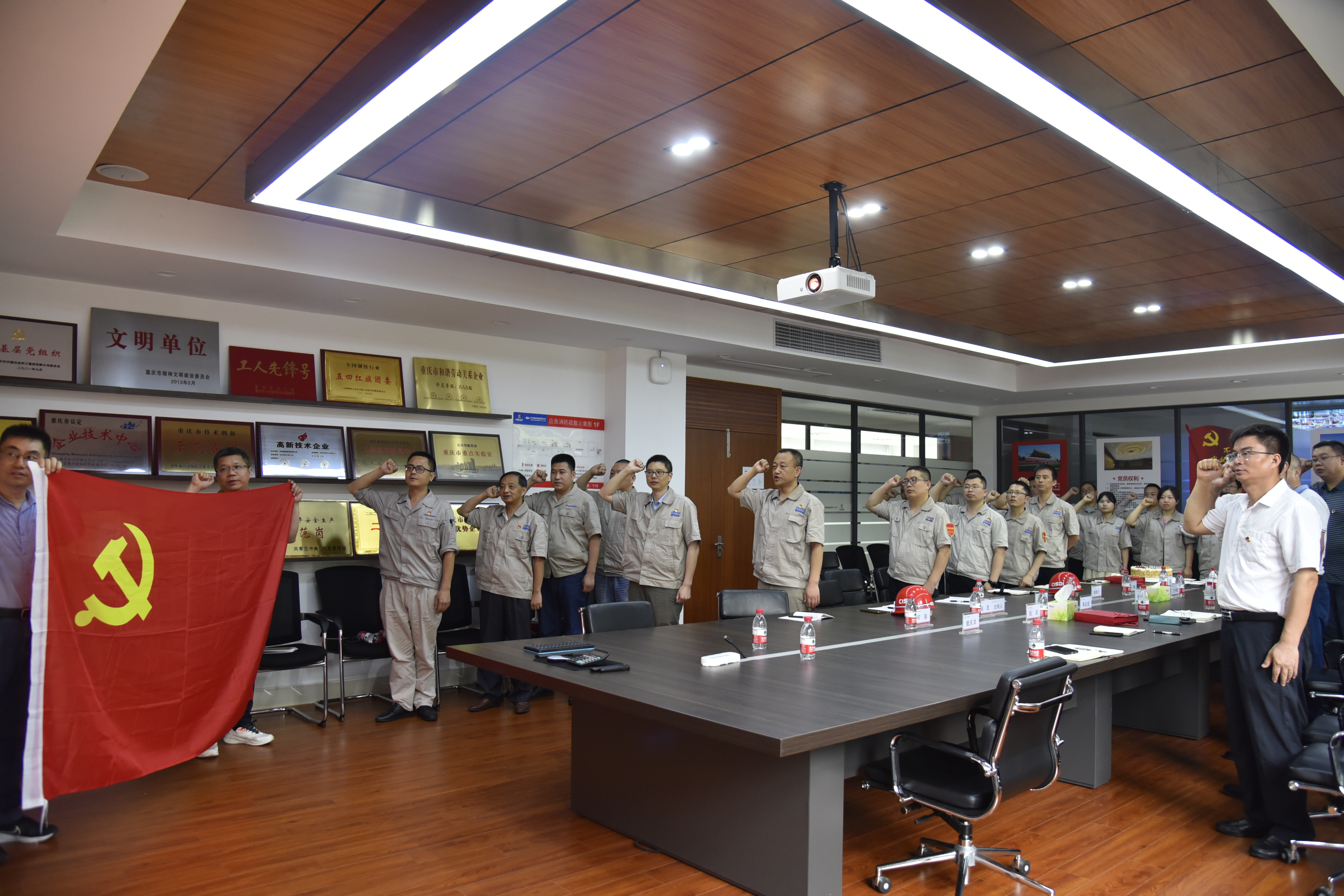 “安全促發展”主題支部共建活動中,區應急管理局機關黨支部全體黨員首先參觀了中冶賽迪裝備制造體驗館、生產車間,詳細了解了賽迪裝備安全生產落實情況。隨后,公司副總經理、安全總監張甲剛率安全管理人員進行安全承諾踐諾宣誓,與會黨員對如何落實習近平總書記關于安全生產重要論述進行了深入交流。最后,兩個支部共同為20余名二季度入黨的黨員同志過集體“政治生日”,并一同重溫入黨誓詞。
