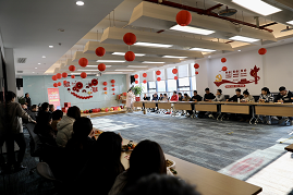 復(fù)城辦公區(qū)同樣熱鬧非凡。活動現(xiàn)場,彩帶、氣球、燈籠等裝飾品將空間裝點得溫馨而喜慶。隨著歡快的音樂,活動正式開始。“招財進寶”箭指好運,“心有靈犀”考驗搭檔之間的默契,“妙語連珠”技巧與智慧并用,“珠聯(lián)璧合”展現(xiàn)平衡技巧,“幸運圓環(huán)”收獲滿滿驚喜。大家在歡樂、溫馨的氛圍中迎接新年的到來,共同創(chuàng)造美好的回憶。