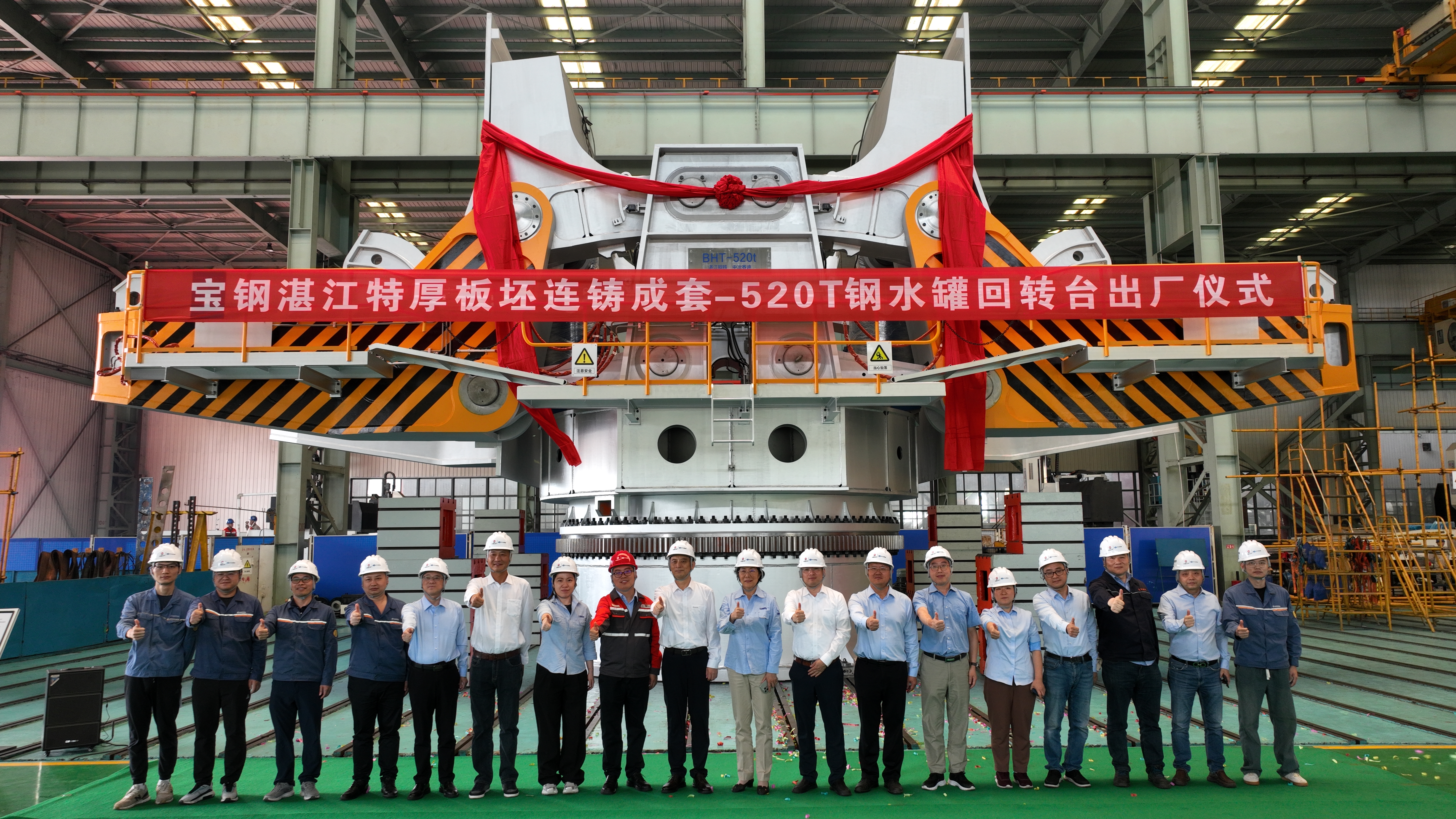 2025年5月14日,由中冶賽迪負責設計制造的寶鋼湛江鋼鐵新增5號特厚板坯連鑄成套項目鋼水罐回轉臺順利通過A檢驗收,正式出廠。寶鋼湛江鋼鐵副總指揮王超及有關領導出席出廠儀式,中冶賽迪股份公司、中冶賽迪上海公司、中冶賽迪裝備公司有關負責人,參與本項目的技術、檢驗、制造人員參加出廠儀式。